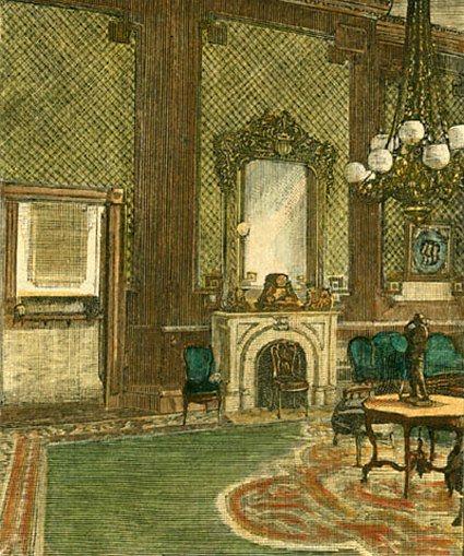 Green Room with the Clevelands' new geometric design, circa 1894
