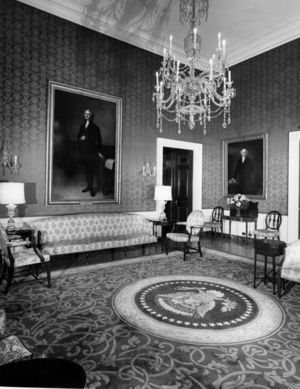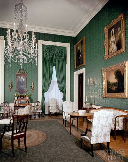 The Green Room after the Kennedy refurbishing, circa 1963 (National Geographic)