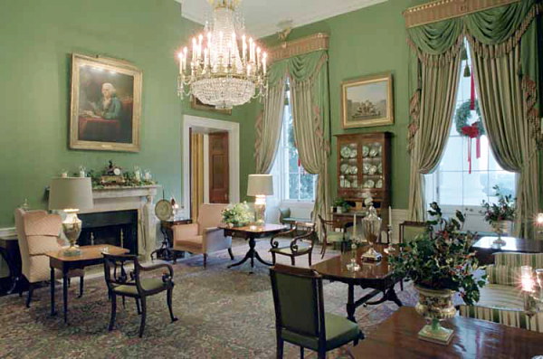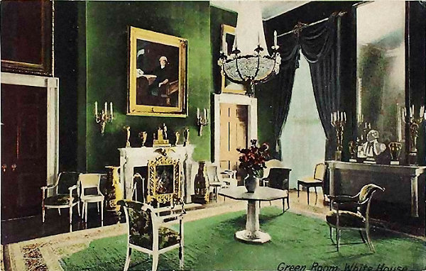 Hand-tinted photo of the Green Room, circa 1904, looking northeast (Library of Congress)