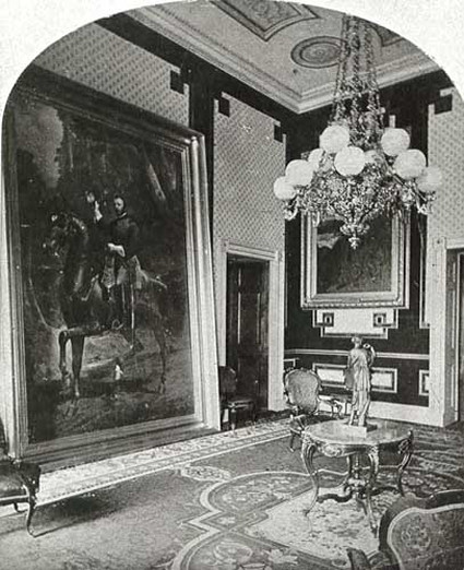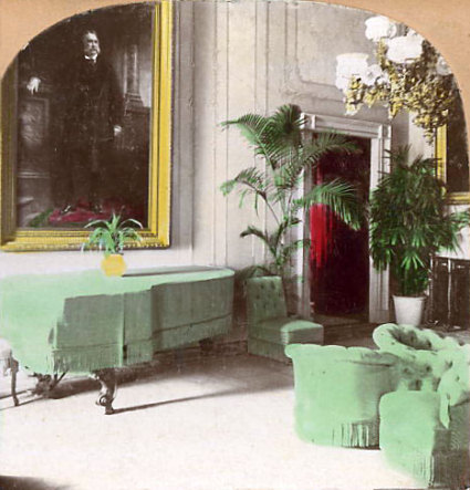 Hand-tinted photo of the Green Room, circa 1903, looking southeast