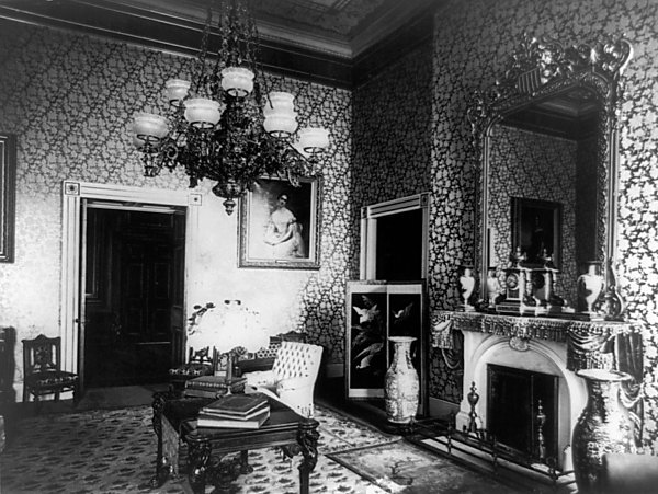The Green Room, circa 1883, with the Garfield decor (Library of Congress)