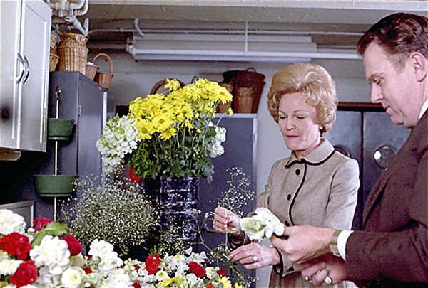 Pat Nixon in the flower shop in 1970 (National Archives)
