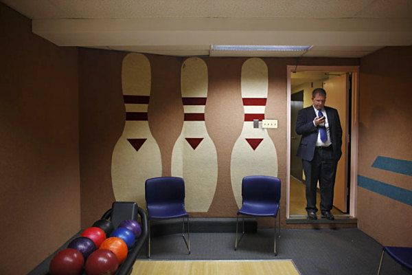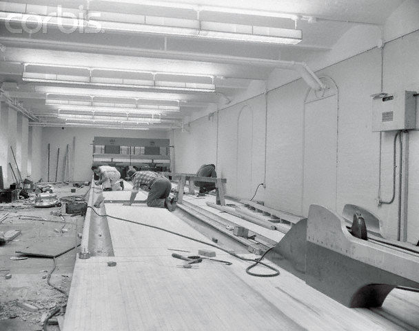 The old bowling alley in 1955, being installed in the Old Executive Office Building (Corbis)
