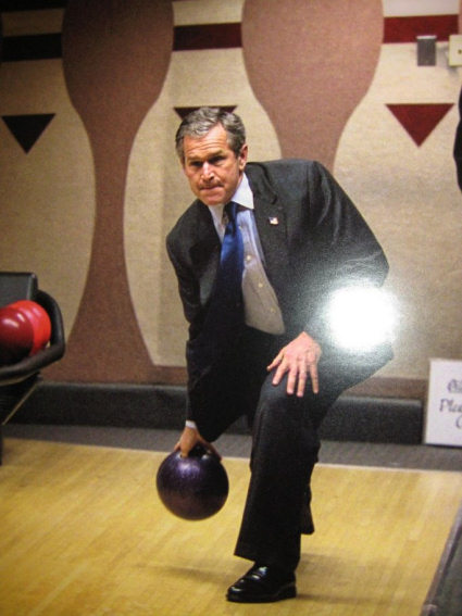 That's a 7-10 Split, Mr. PresidentThe White House Bowling Alley is a one-lane bowling alley in the basement of the White House under the North Portico. Bowling lanes were first built in the ground floor of the West Wing as a birthday gift for President Truman in 1947 (in the location of the present-day Situation Room); Truman didn't care for bowling himself, but allowed staff to start a league. These were moved to the Old Executive Office Building in 1955 to make way for a mimeograph room. In 1969, President and Mrs. Nixon, both avid bowlers, had a new one-lane alley built (paid for by friends) in an underground workspace area below the driveway leading to the North Portico. |