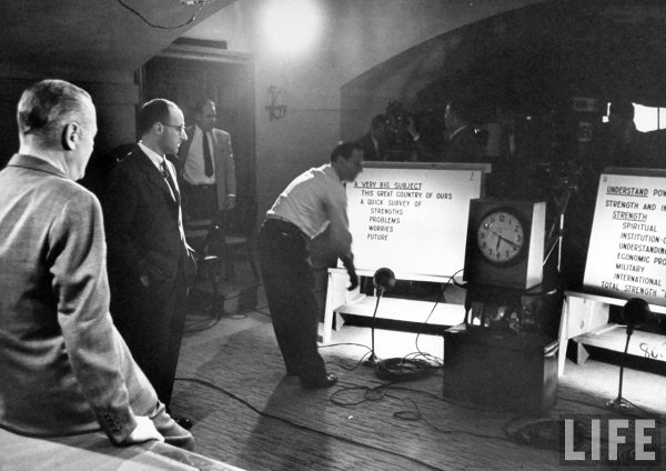 The prompters for a speech in the Broadcast Room in 1954 (Life)