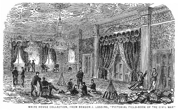 Lincoln-era East Room, around 1862 (Library of Congress)