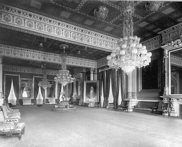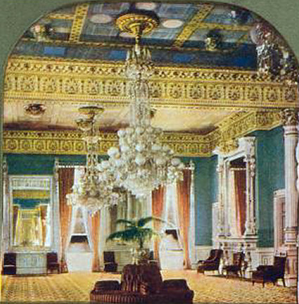 Victorian decor of the East Room, circa 1868 (Library of Congress)