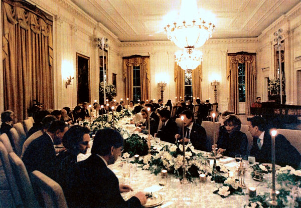 Former President Harry Truman playing piano at a dinner in his honor in 1961 (NARA - Kennedy Library - Cecil Stoughton)