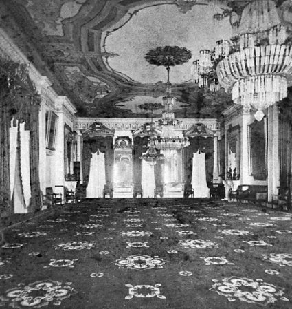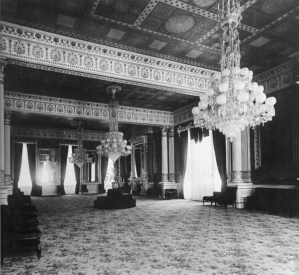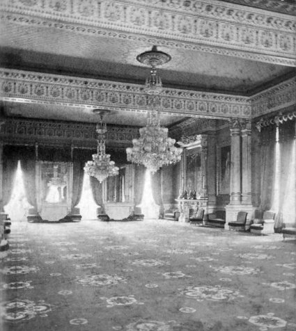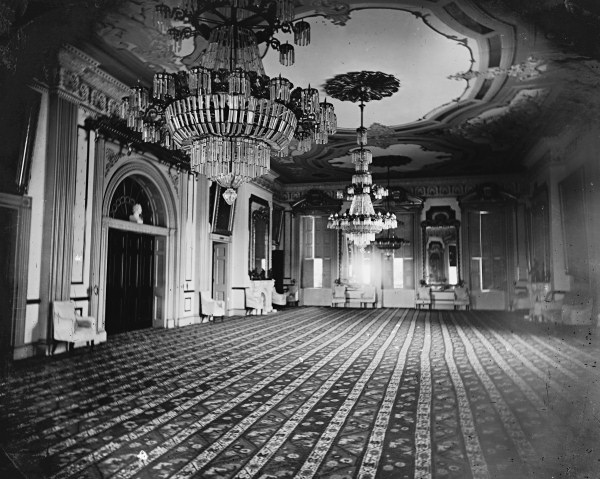 The East Room around 1902, with the old carpet reinstalled after the renovation (Library of Congress)