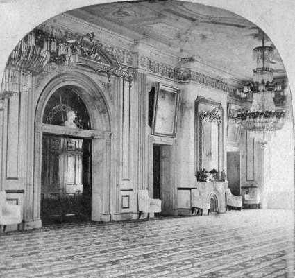 Hand-tinted photo of the East Room around 1900 [stereo] (New York Public Library)