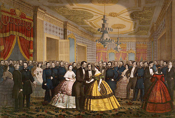 Etching of Abraham Lincoln's last reception in 1865 (Library of Congress)