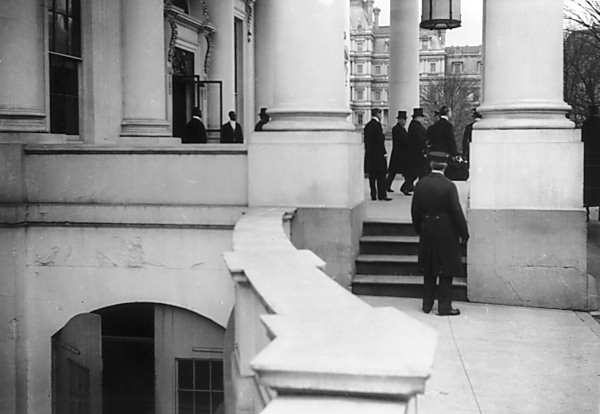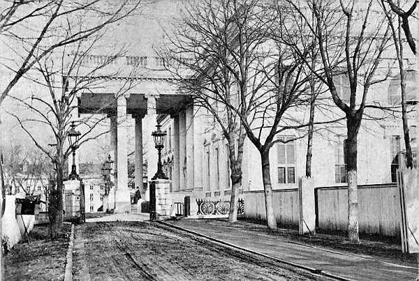 The North Portico at the time of Alice Roosevelt's wedding in 1906 (Library of Congress)