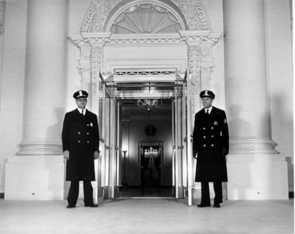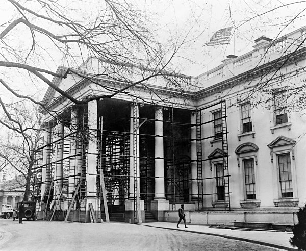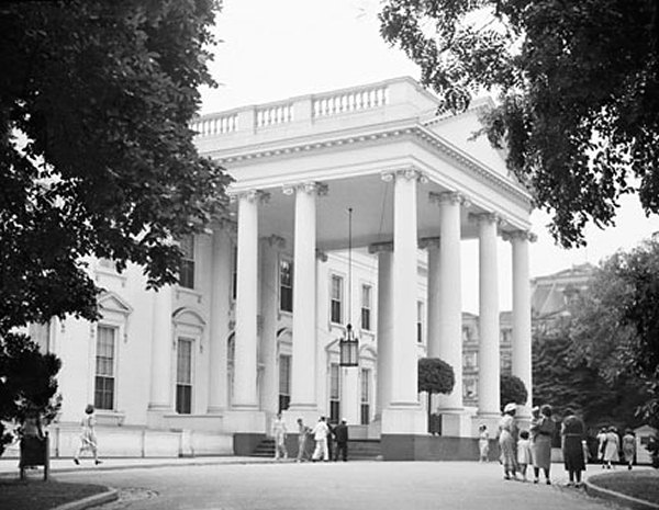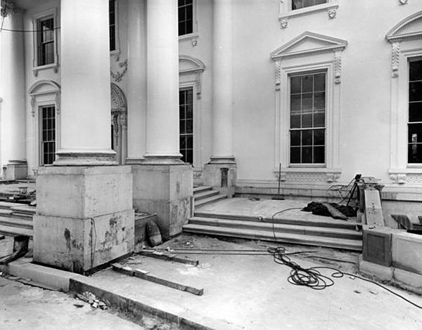 The North Portico in 1952, reopened after the reconstruction (Truman Library - Abbie Rowe)