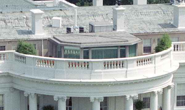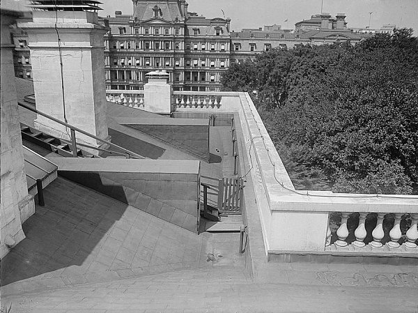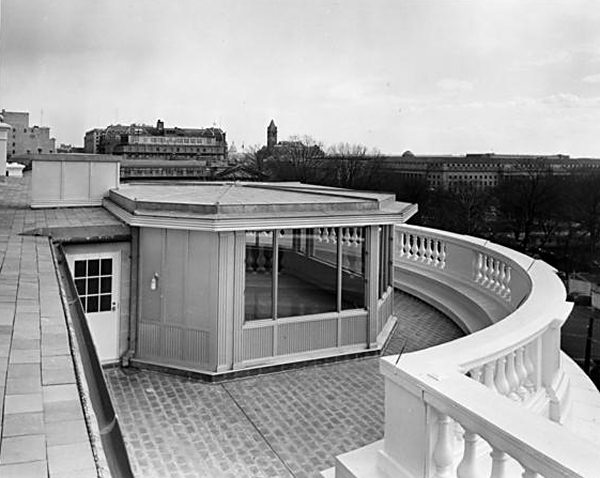 The PromenadeBefore the construction of a proper third floor in 1927, this was simply part of the roof. Early in the 20th century a simple "sleeping porch" was built here in the space now occupied by the Solarium. The Promenade has since become something like a patio for first families. President Eisenhower like to grill on the Promenade. His preferred method was to grill salt-encrusted steaks right on the coals. The Promenade is surrounded by a high and heavy balustrade that shields it from wind and from view. The Promenade sits about 3 feet higher than the third floor itself, except for the Solarium, which is at the same level as the Promenade. Adapted from America's First Families: Chapter 3, A Home Within a Symbol: