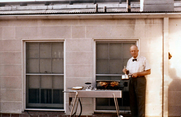 Ike grilling outside the Sun Room (Eisenhower Library)