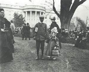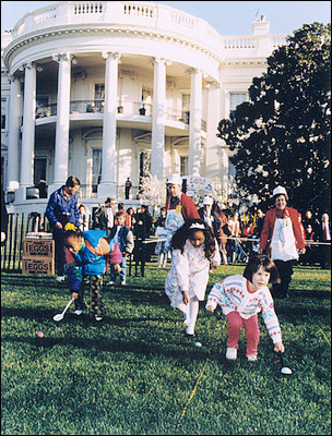 The south lawn is the site of one of the White House's most treasured traditions: the annual Easter egg roll. Rolling eggs on the Monday after Easter was a tradition observed by many Washington families in the 19th century, including those of the president. Public egg-rolling celebrations were originally held on the grounds of the Capitol at least as early as 1872. But in 1876 Congress passed the Turf Protection Law to prohibit the area from being used as a playground. After a rain-out in 1877, President Rutherford B Hayes opened the gates to the south lawn in 1878.