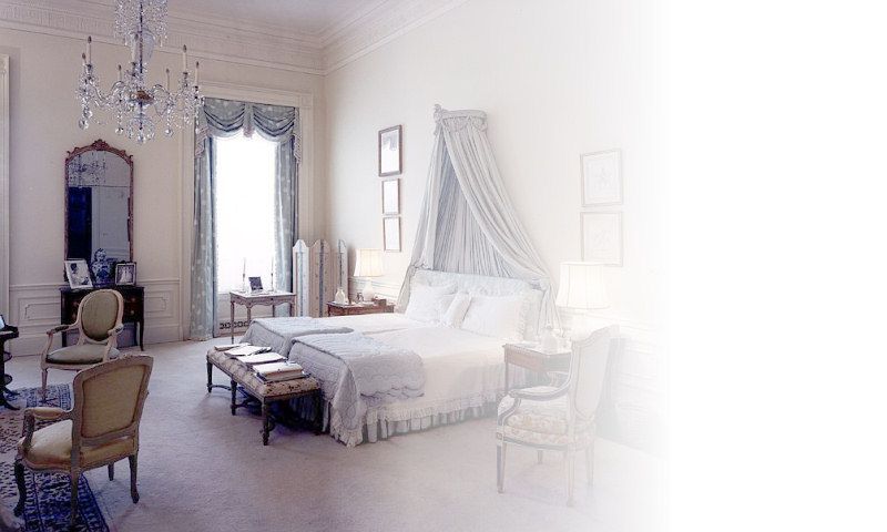 The Kennedy Master Bedroom in 1962: twin beds—one soft; one hard, for Jack's back—pushed together. One of the few good color photos of the Master Bedroom. |