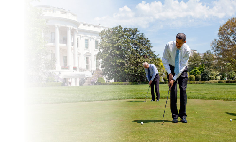 The president on the putting green in 2009 (White House photo - Pete Souza). |