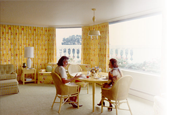 Betty Ford and Happy Rockefeller in the Solarium in 1975. |