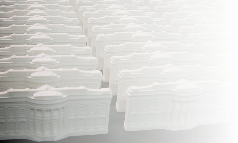 Some of the 80,000 castings of the White House prepared for the official 2005 Christmas ornaments by Design Formations. |