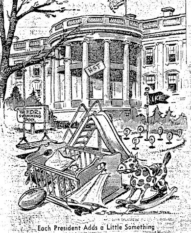 - President Carter's daughter Amy had a treehouse on the south lawn. The Kennedys had a trampoline and a swing. The Kennedys and the Theodore Roosevelts both kept their children's pony on the White House grounds. Ask the students what they would like to have in the president's back yard if they lived at the White House.