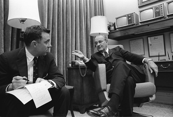 Lyndon Johnson and Joe Califano in 1968 (Johnson Library - Yoichi Okamoto)