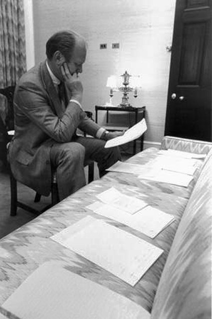 President Ford examines documents related to potentional VPs in 1974 (Getty Images)