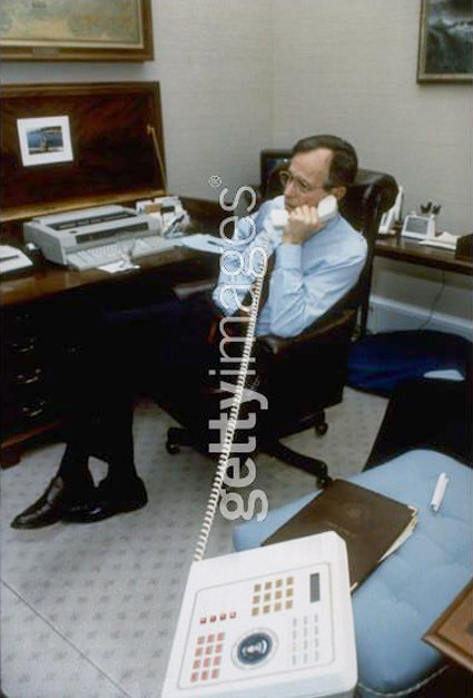 George HW Bush on the telephone in 1991 (Getty Images - David Valdez)
