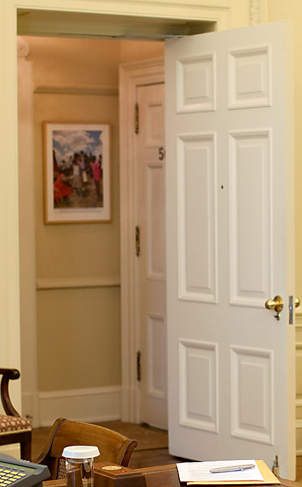 Hall to the study; door to the lavatory (labeled 500) (White House - Pete Souza)