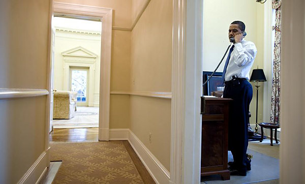 Barack Obama in the study in 2009 (White House - Pete Souza)