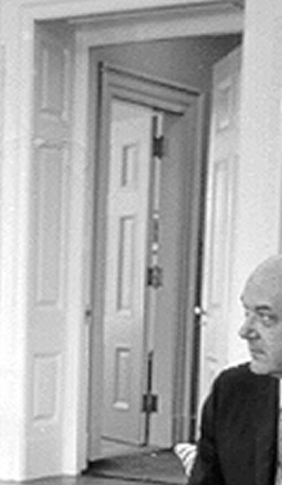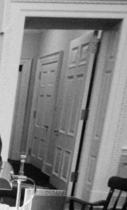 Study (left) and pantry (right) doors in the hall outside the study, around 1961 (right: Life - Joe Scherschel)
