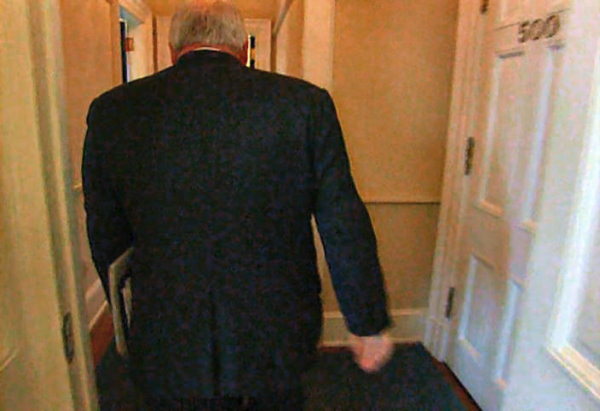 Vice-President Dick Cheney passes by the president's private lavatory (marked "500"), circa 2002