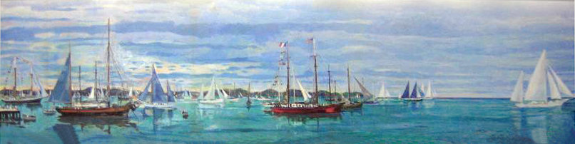 In 1961, as a gift from his father, a huge mural was painted (by Bernard Lamotte) on three walls of the swimming pool room for President Kennedy. It featured a Caribbean scene with many sailboats on calm waters. The opposite long wall was fitted with mirrors. John Kennedy sometimes held swimming races with Cabinet members. He liked the pool so much that he made a habit of stopping by at noon, stripping down for a swim, and padding back to his bedroom for lunch and a nap in nothing but a robe. He did the same at the end of the day, dressing again for dinner. As a result, Chief Usher JB West observed, "John F Kennedy wore three separate suits of clothes every day of his White House life." During the Johnson administration, the walls were hung with dozens of bathing suits of all sizes so that guests could swim.